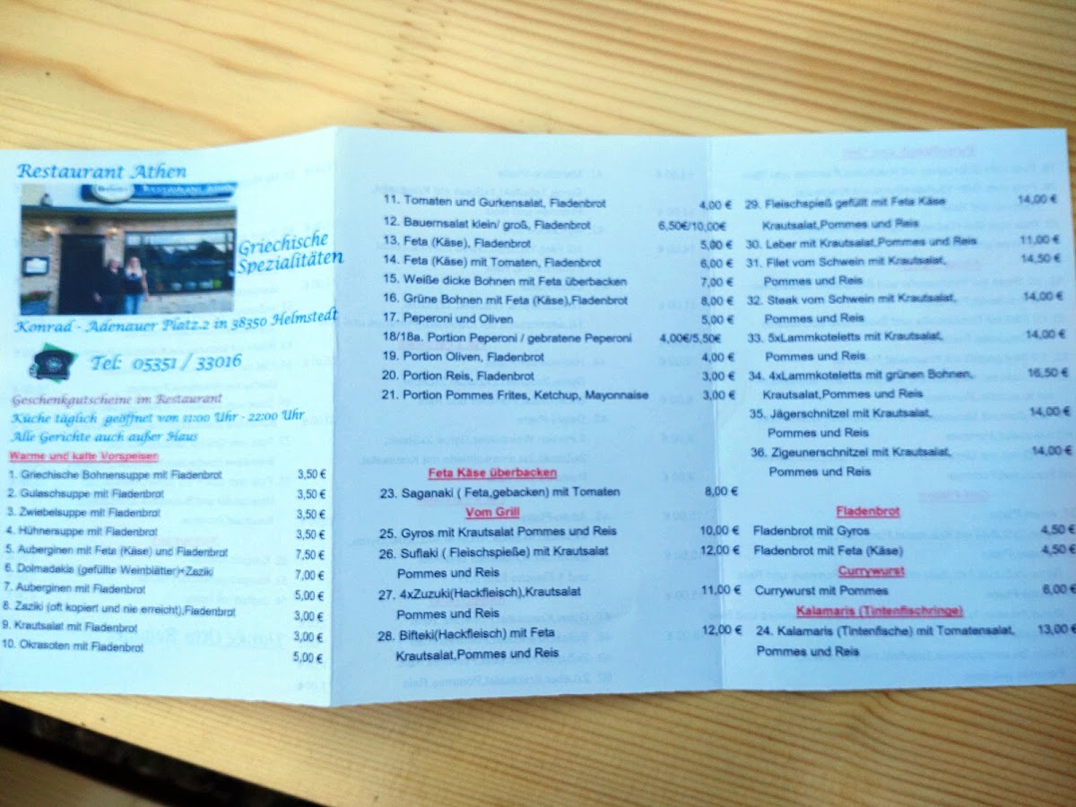 Introducing the menu at Restaurant Athen, a hidden gem located at Konrad-Adenauer-Platz 2 in Helmstedt, Germany. Known for its authentic flavors and generous portions, Athen offers a delightful selection of Mediterranean dishes that leave diners wanting more. One standout item is the mixed grill for two, praised for its well-cooked meats and homemade tzatziki bursting with garlic flavor, a treat not commonly found in the Netherlands.